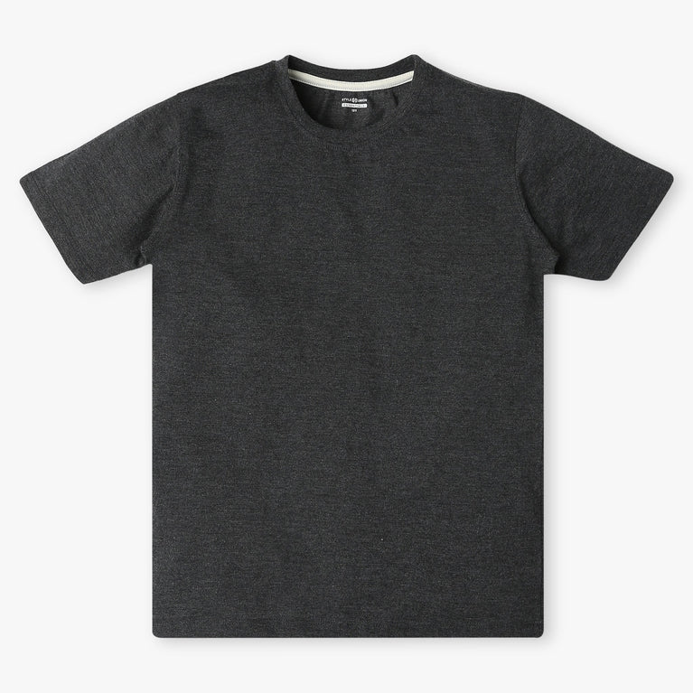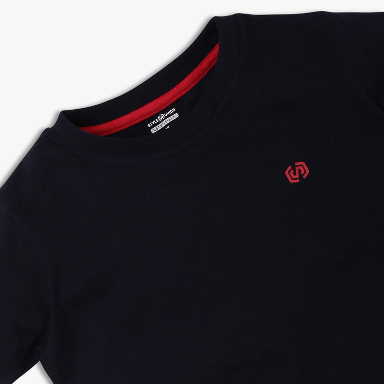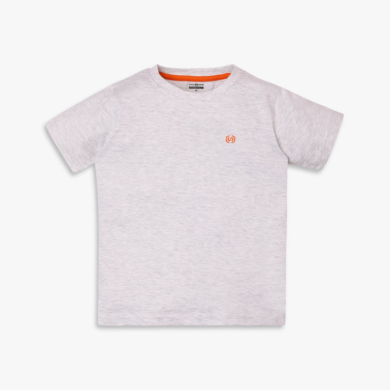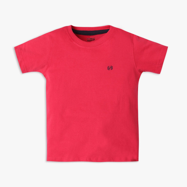 This knitted boys t shirt theme solid pattern t-shirt has a crew neck and half sleeve. Made from cotton, your kid's feel comfortable wearing a product.