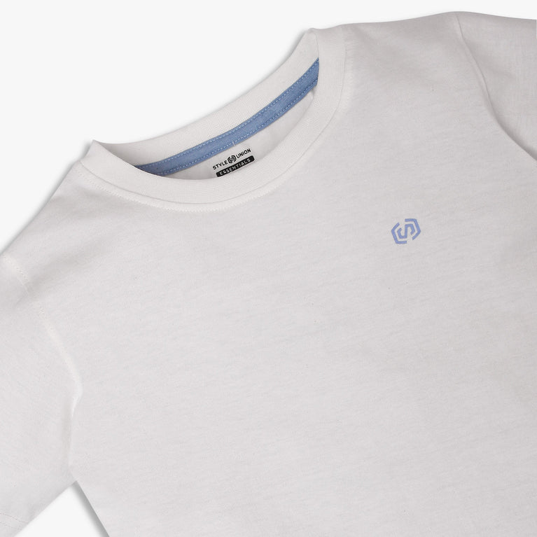 This t-shirt has a crew neck and half sleeve. Made from cotton, your kid's feel comfortable wearing a product.