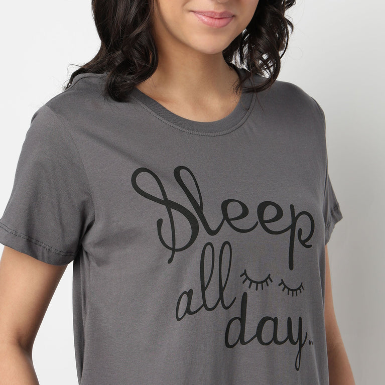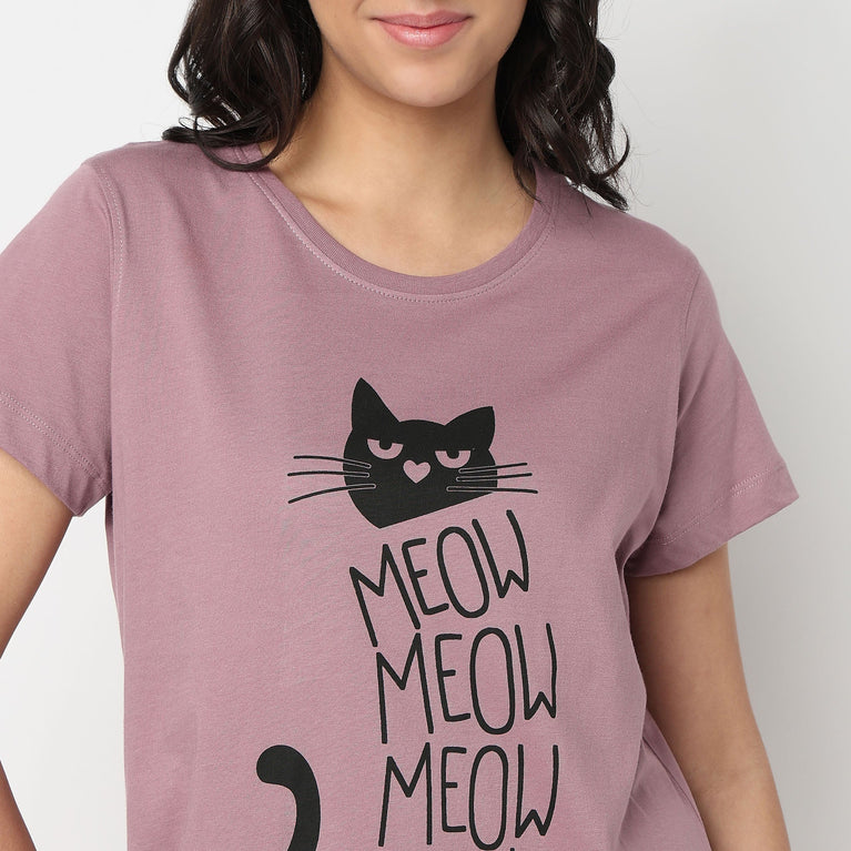 Elevate your casual wardrobe with our Cotton Printed Lounge T-Shirt, designed for women who appreciate comfort and style. This regular fit t-shirt features a playful print that adds a touch of personality to your everyday look.