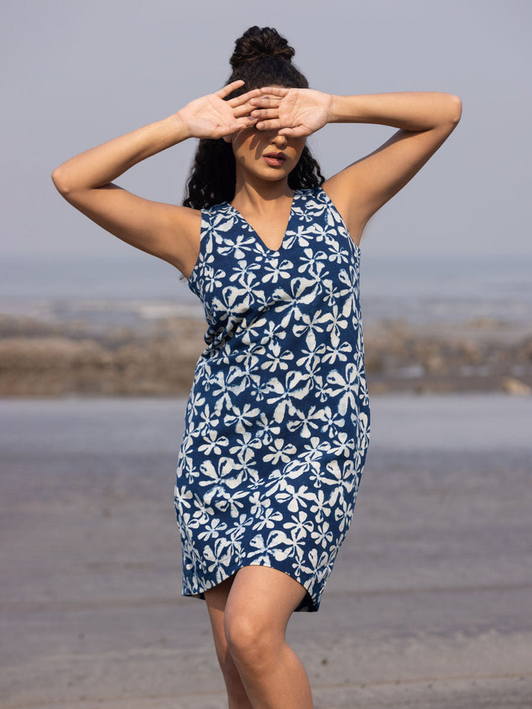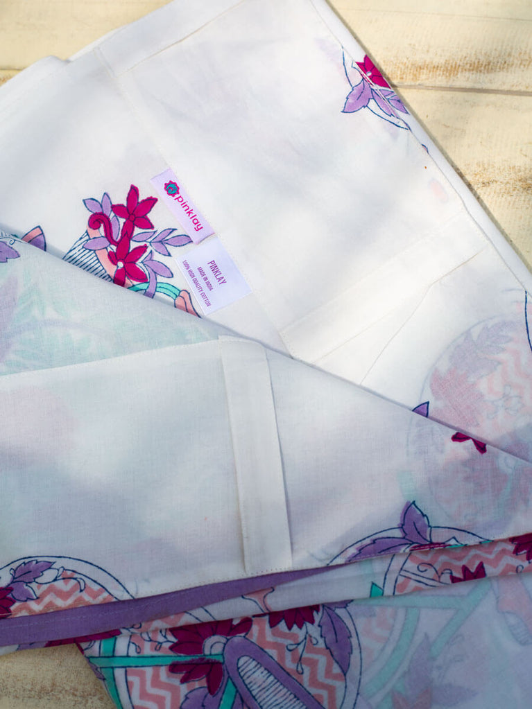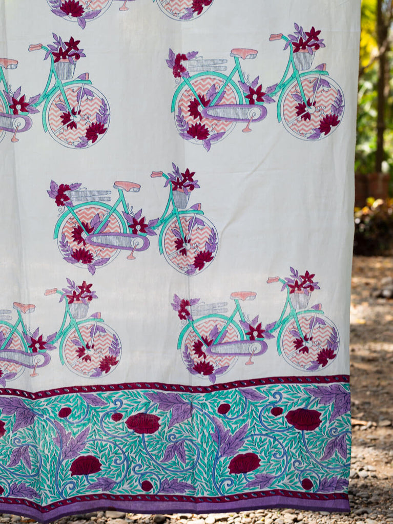 Hibiscus Block Printed Cotton Dhurrie Rug
