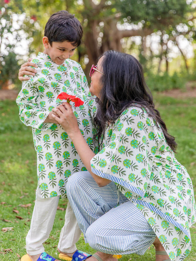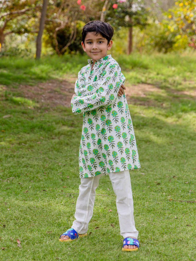 Pear Organic Cotton Block Printed Kaftan for Kids