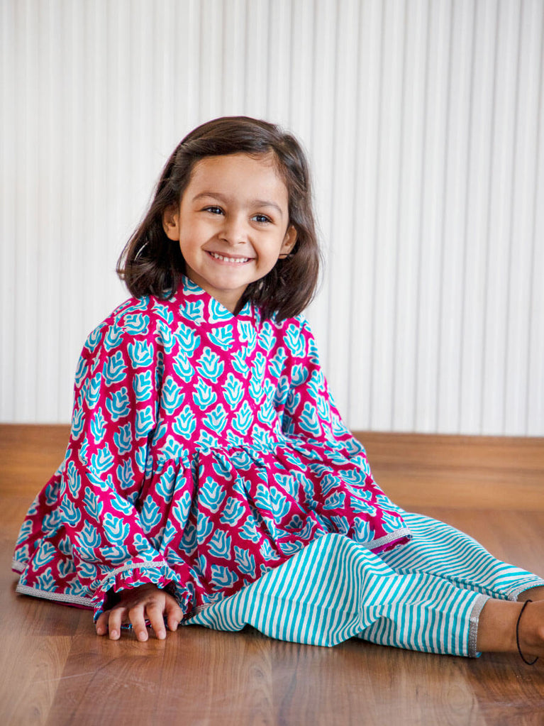Set of 2 - Flower Garden Organic Cotton Block Printed Top & Pants Set
