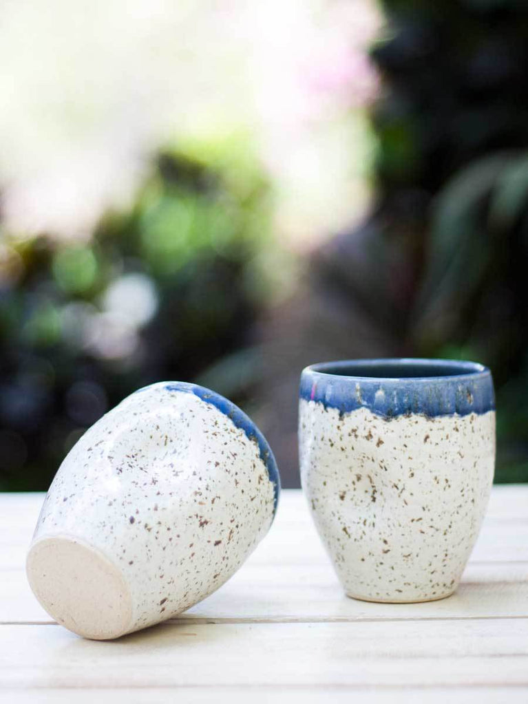 Set of 2 - Aqua Dance Dimpled Hand-Thrown Ceramic Tumbler