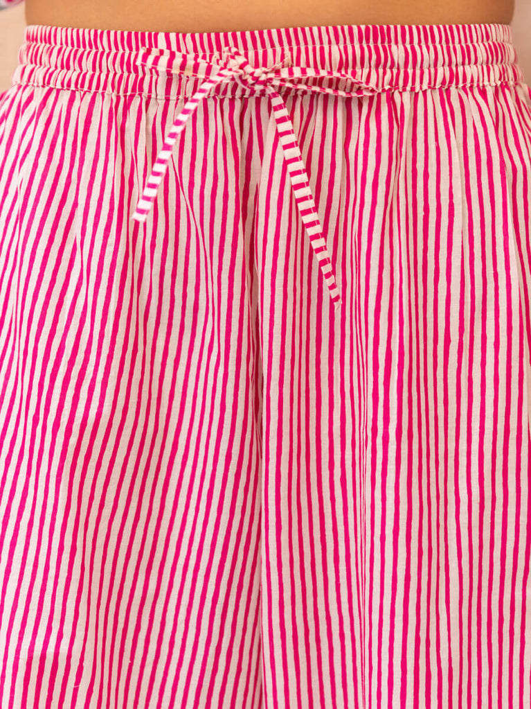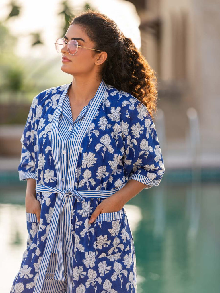 Blue Stripes Block Printed Cotton Top & Pyjama Set