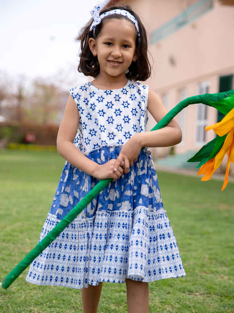 Blue Wonder Organic Cotton Block Printed Sleeveless Dress