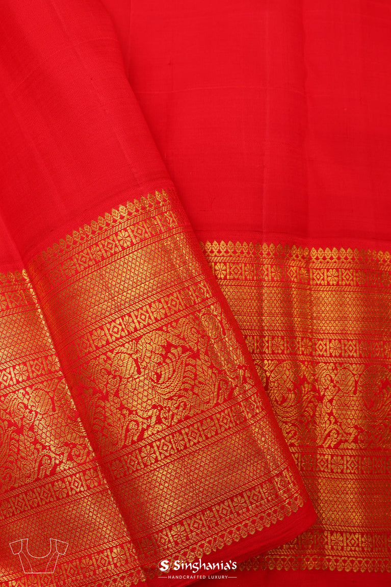 Crimson Red Kanjivaram Silk Saree With Floral Jaal Weaving