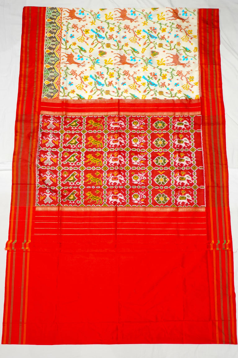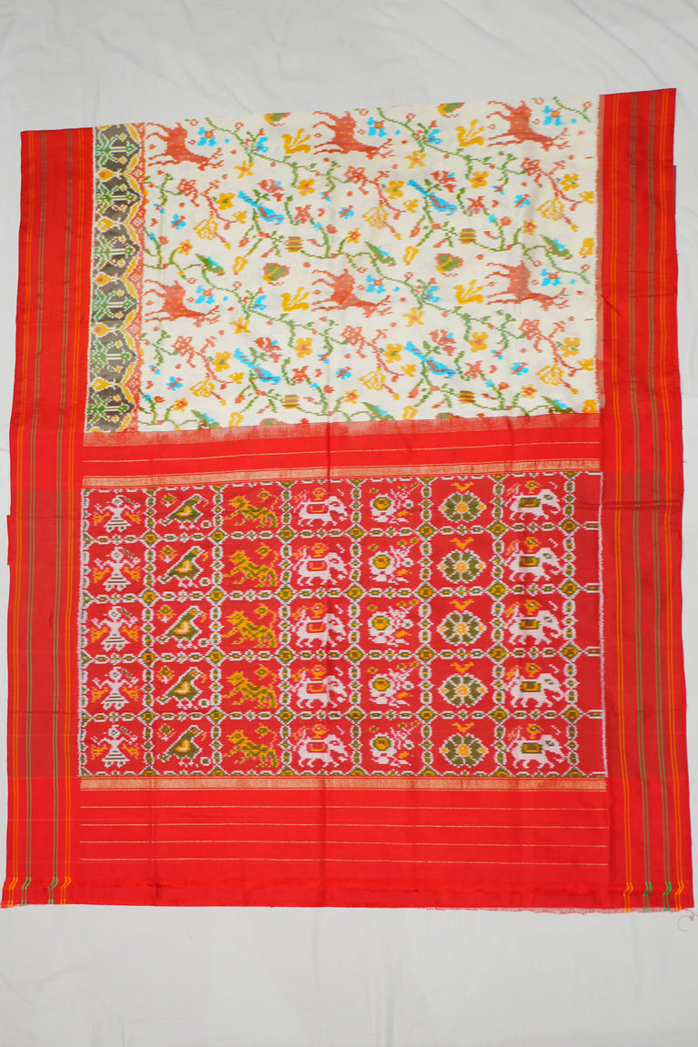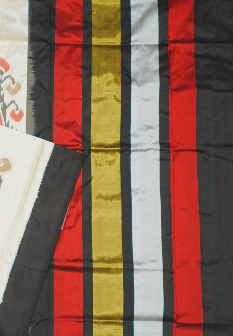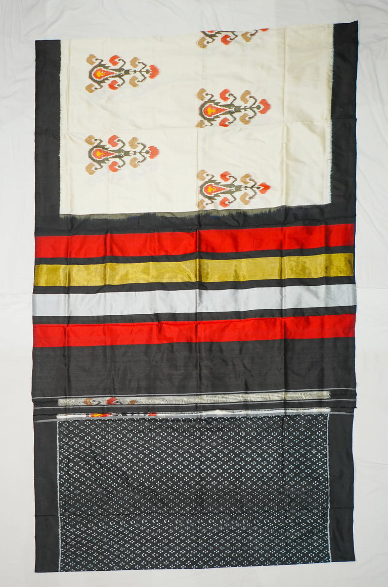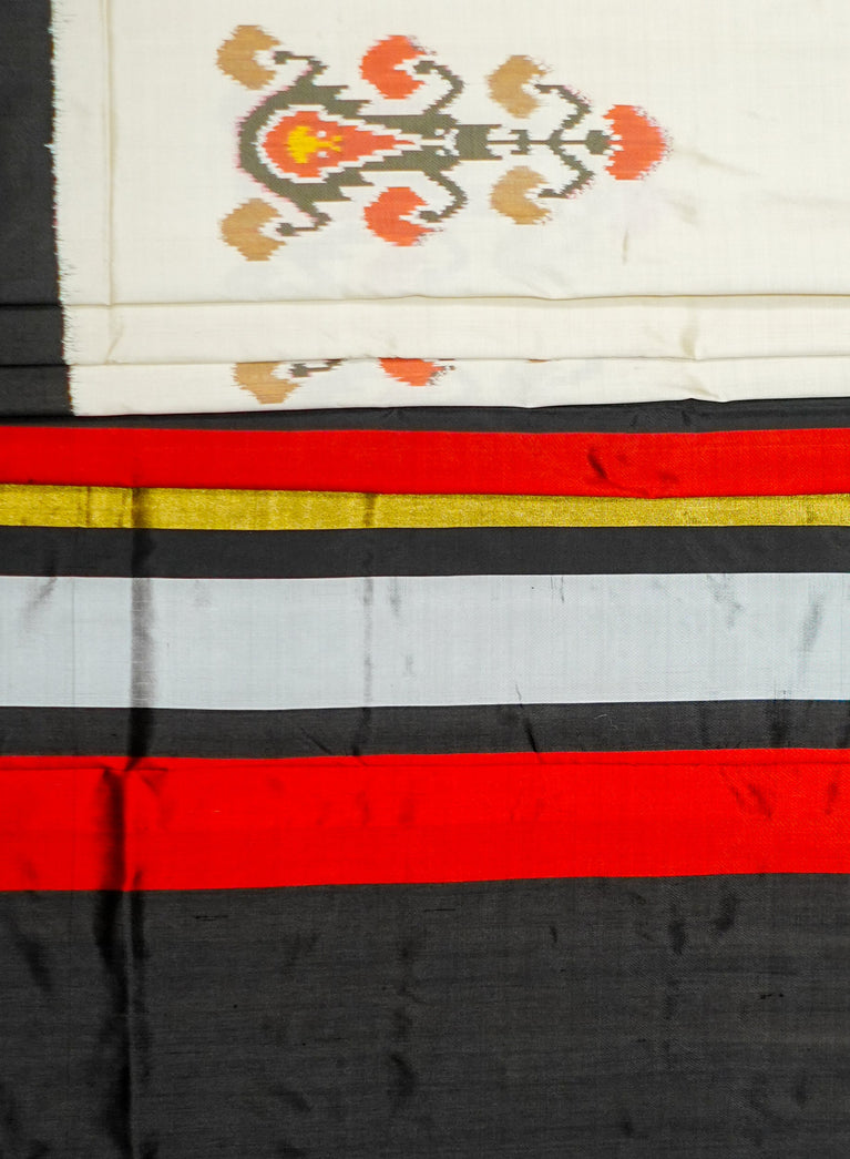 Elevate your ethnic wardrobe with this stunning Cream Patola Handloom Saree, a timeless piece that celebrates traditional craftsmanship. Woven with meticulous care using authentic patola techniques, this saree features a luxurious cream base that exudes elegance and sophistication. The vibrant multicolor border adds a striking contrast, making it perfect for weddings, festivals, and special occasions. Each saree is a unique creation, showcasing the artistry of skilled weavers. Drape yourself in heritage and grace with this versatile handloom treasure that complements both traditional and contemporary styling.