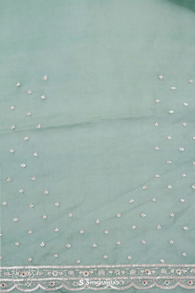 Eucalyptus Green Crafted Buttis Organza Saree