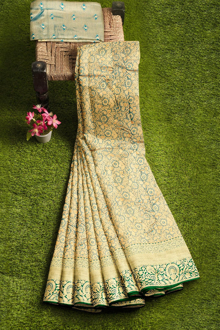 Flax Gold Tissue Banarasi Silk Saree