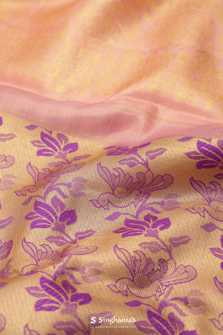 Golden Pink Tissue Kanjivaram Saree Peacock Design