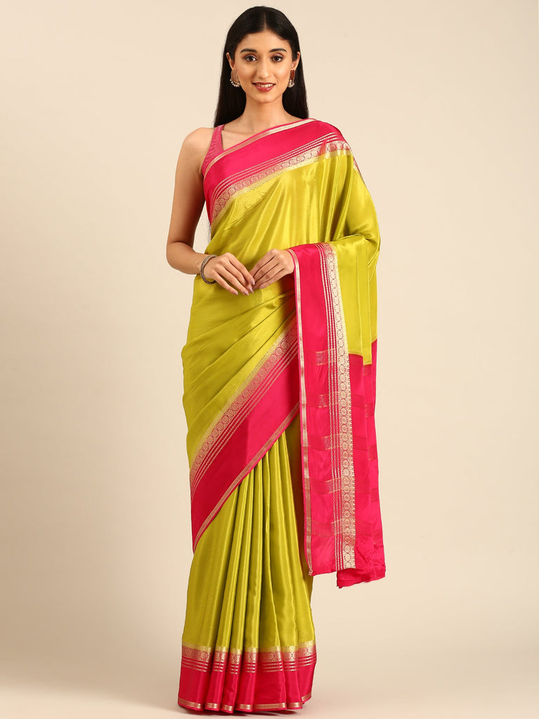 Green Mysore crepe silk saree plane contrast border and pallu