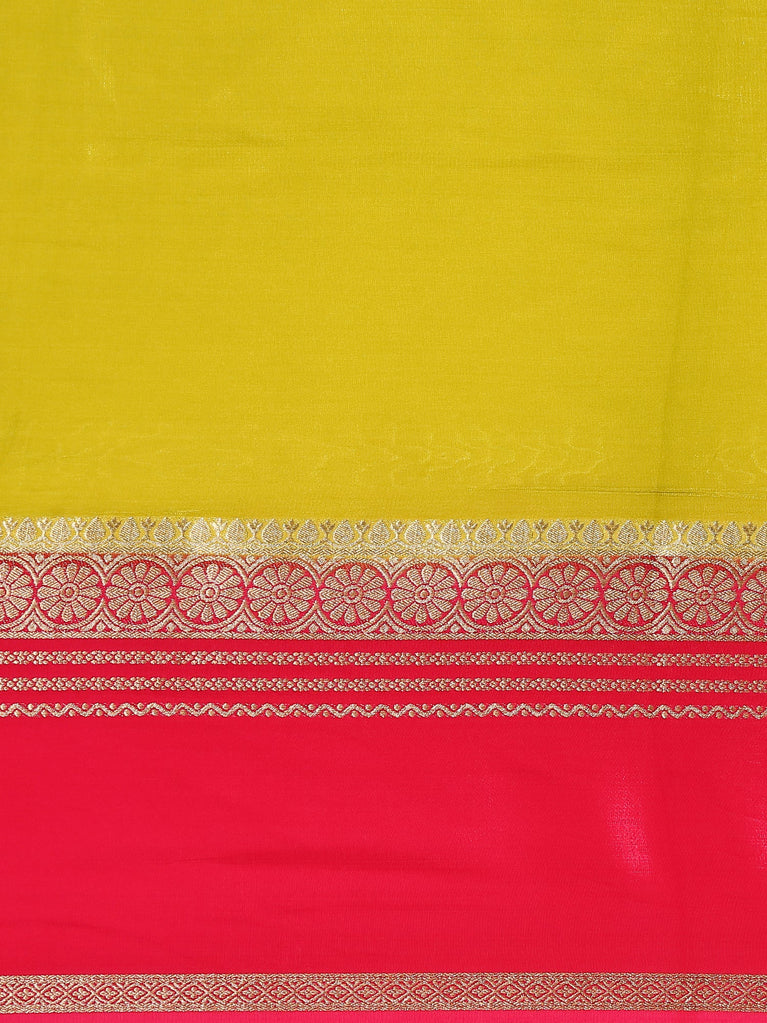 GREEN and GOLD PLAIN SILK BLEND Saree with SEMI PATTU