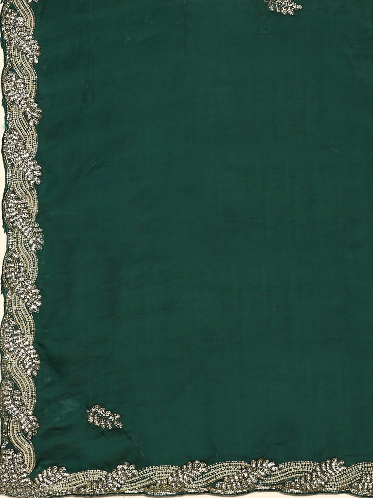 Green Tissue Saree With Sequins And Zari Work