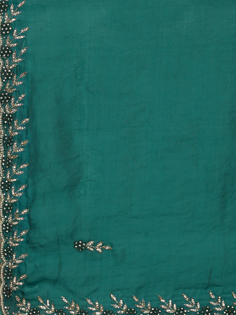 Green shimmer tissue saree with cut Dana & Swarovski embroidery