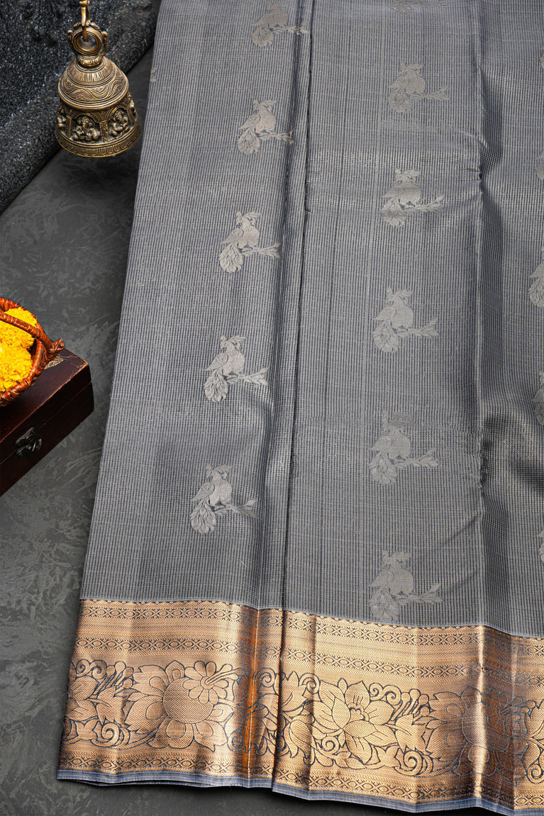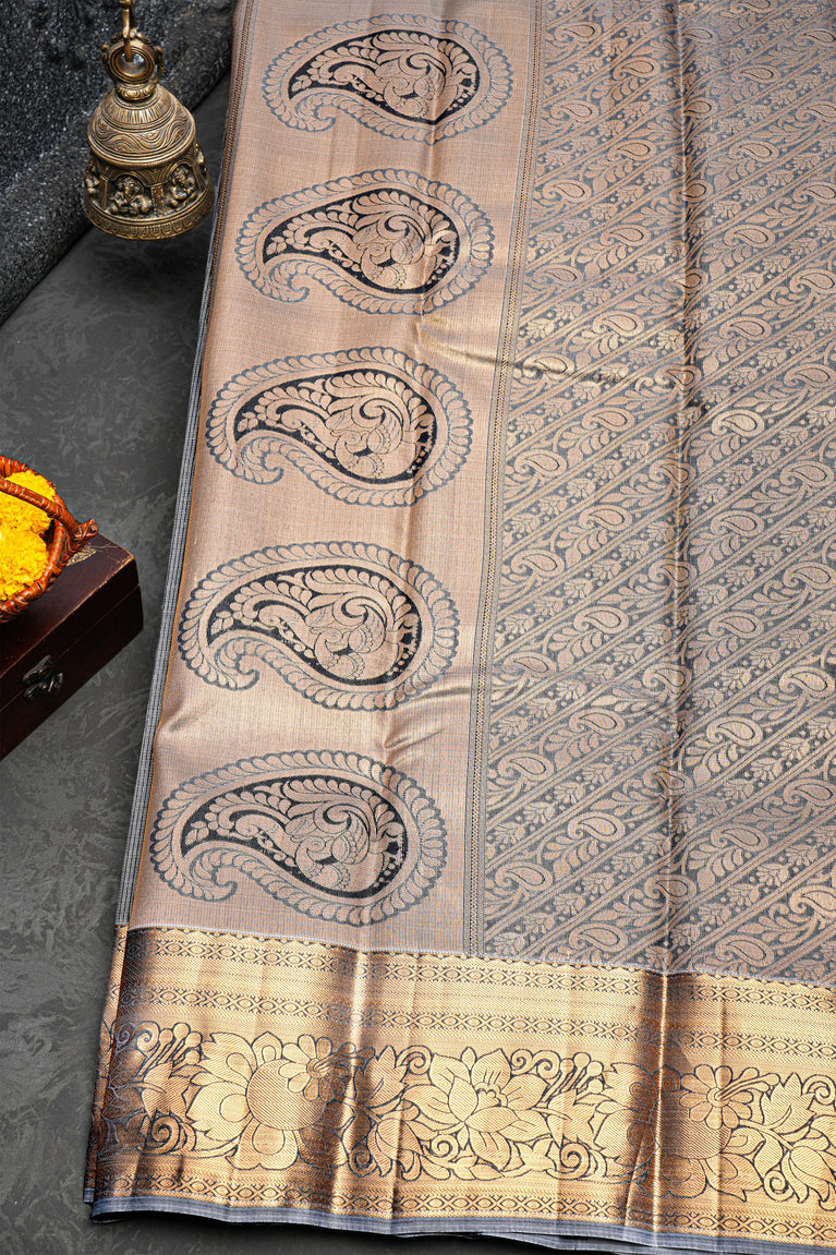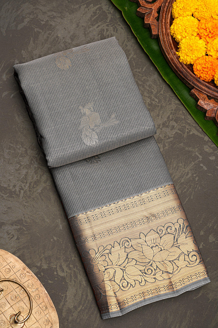 Green Gold Tissue Kanjivaram Saree With Floral Jaal Weaving