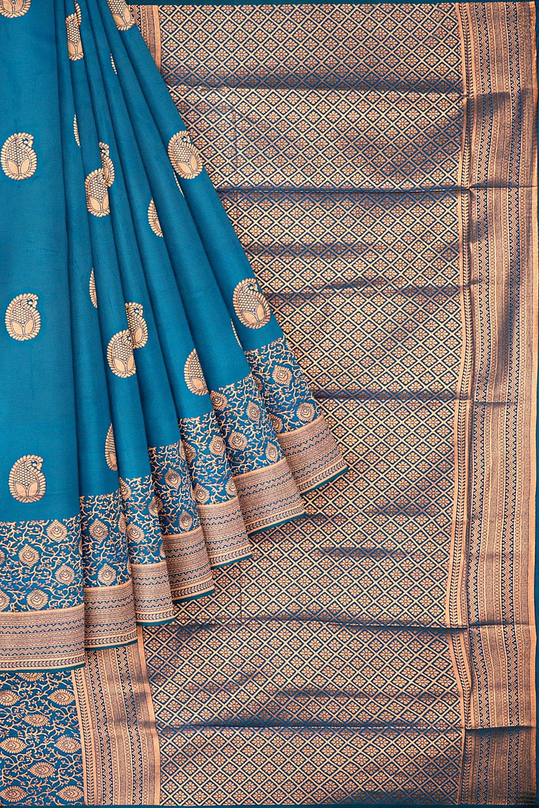 ROYAL BLUE and GOLD BUTTIS SILK BLEND Saree with SEMI PATTU