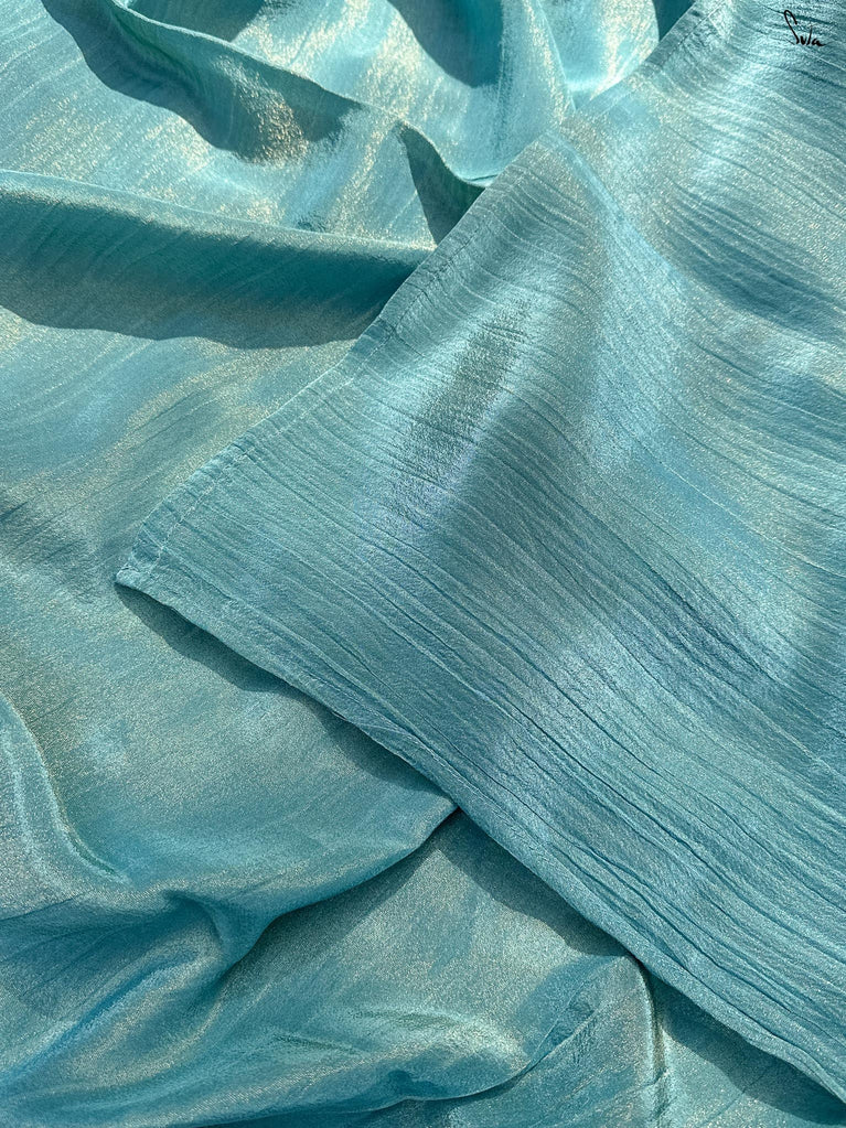 A glass of bold poured into the fabric. This wine crushed viscose saree is rich, moody, and unapologetically dramatic. Contrast tassels and a streak of gota at the border add that intoxicating flash of glam.