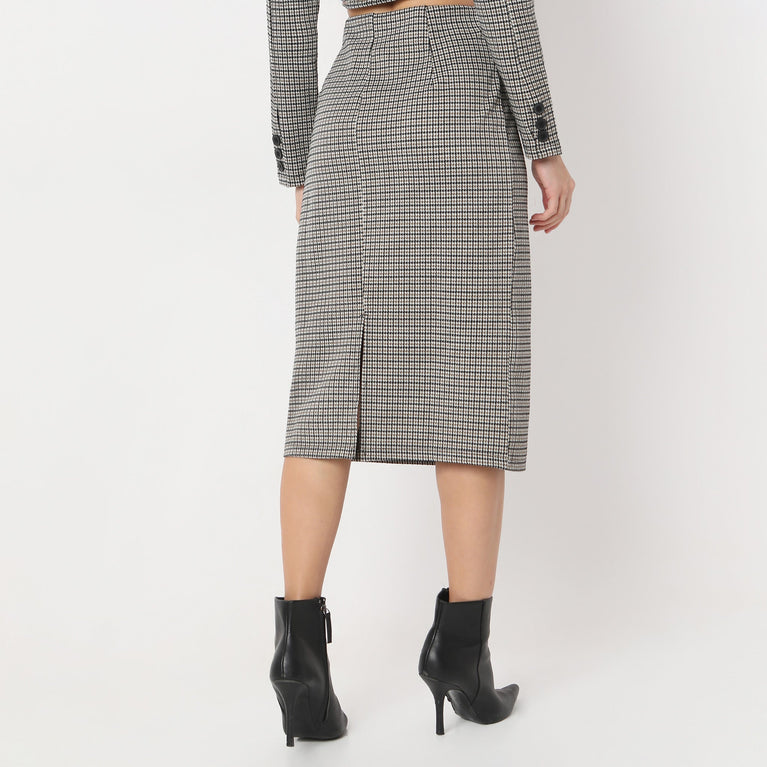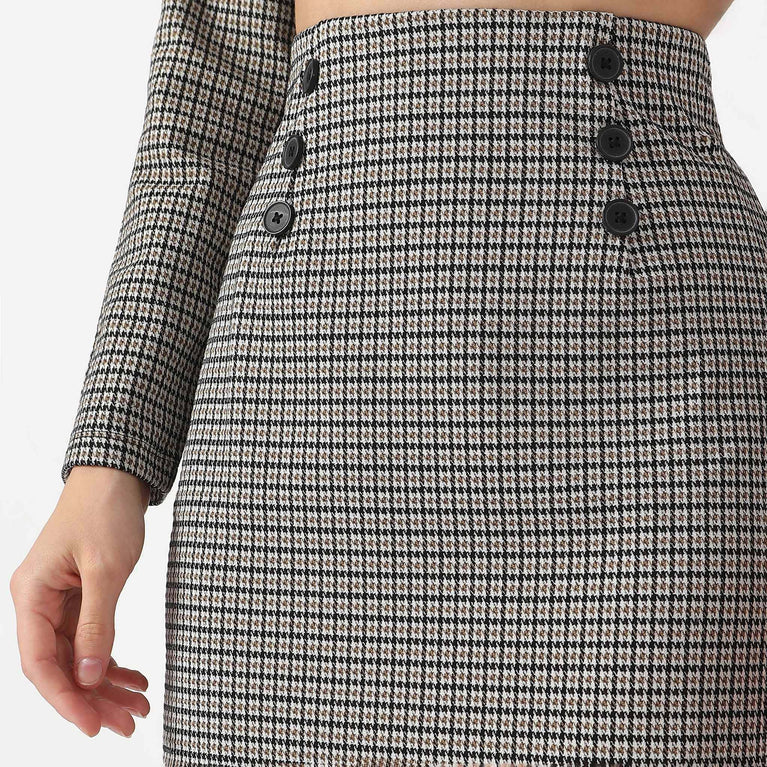 These checkered pattern regular fit skirts has above knee length, high rise waist. Made from polyester spandex, it is soft and comfortable to wear.