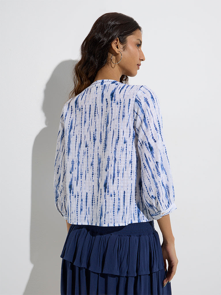 Bombay Paisley Blue Tie-Dye Patterned Cotton Top