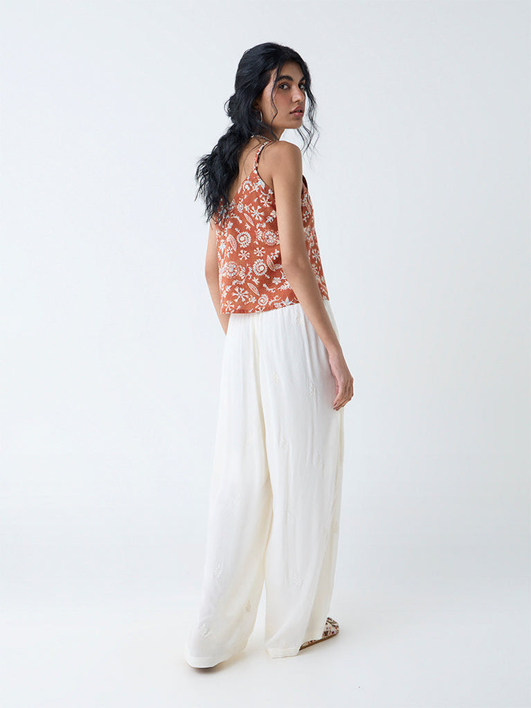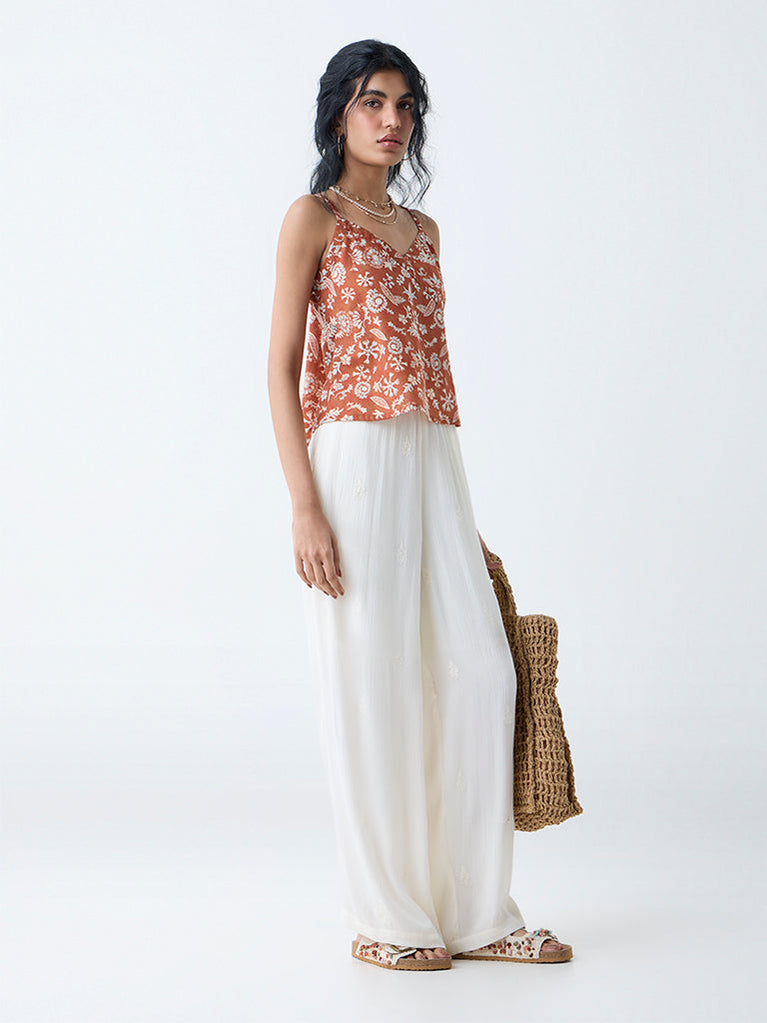 Bombay Paisley Cream Floral Embroidered Cotton Top