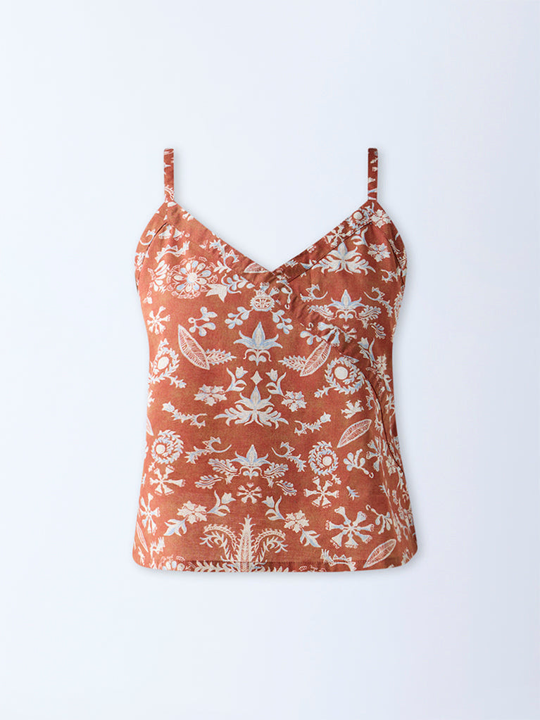 Bombay Paisley Brown Floral Printed Cotton Top