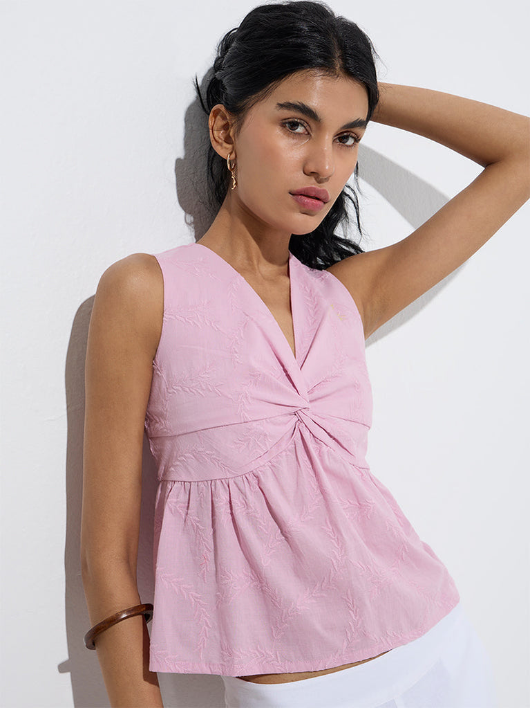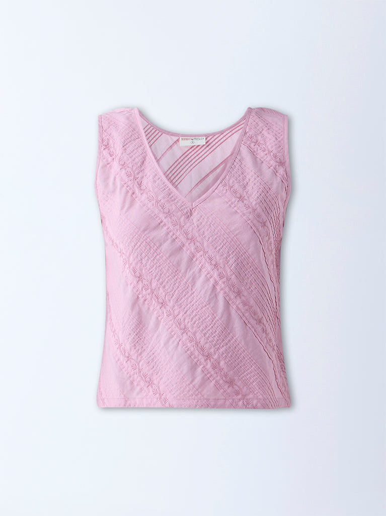 This pink top from Bombay Paisley is elevated with delicate floral embroidery that lends a feminine touch. Created from pure cotton for daily comfort, it includes a flattering V-neckline and sleeveless cut for a breezy finish.