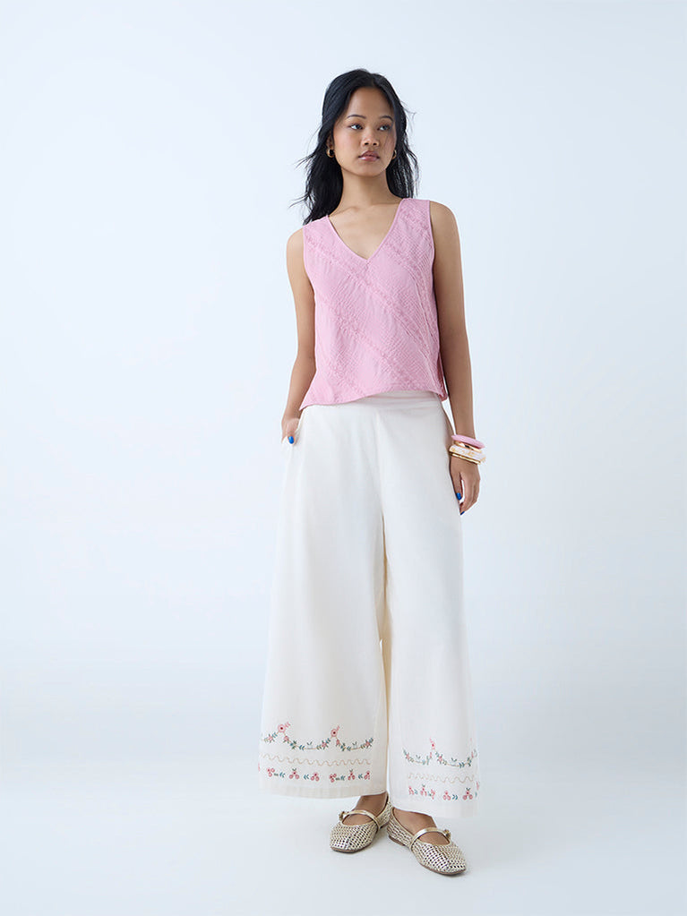 Bombay Paisley Off-White Floral Embroidered Cotton Top