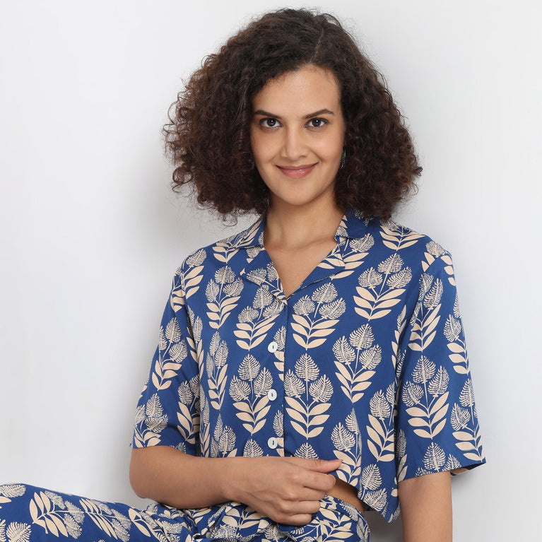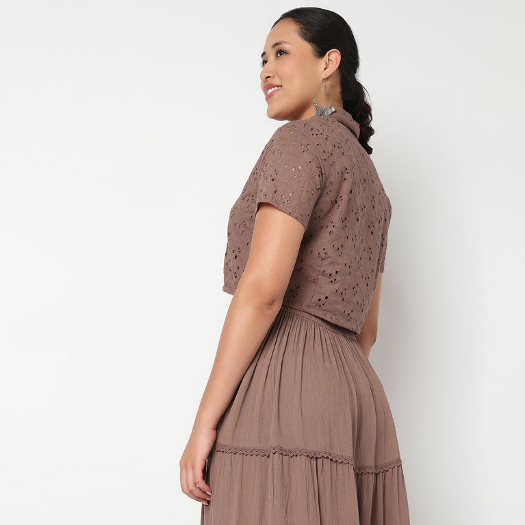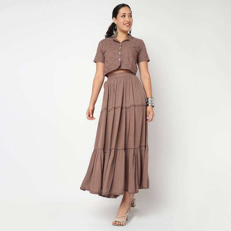 These fusion sets - ctop & bottom theme, boxy fit top has crop top length. Made from viscose, it is soft and comfortable to wear.