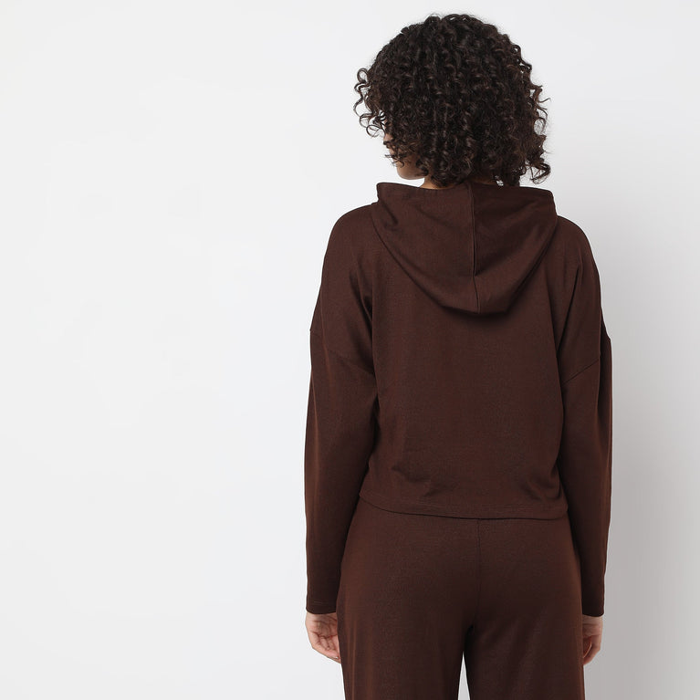 This solid pattern top has a hoodie and full sleeve. Made from polyester, it is soft and comfortable to wear.