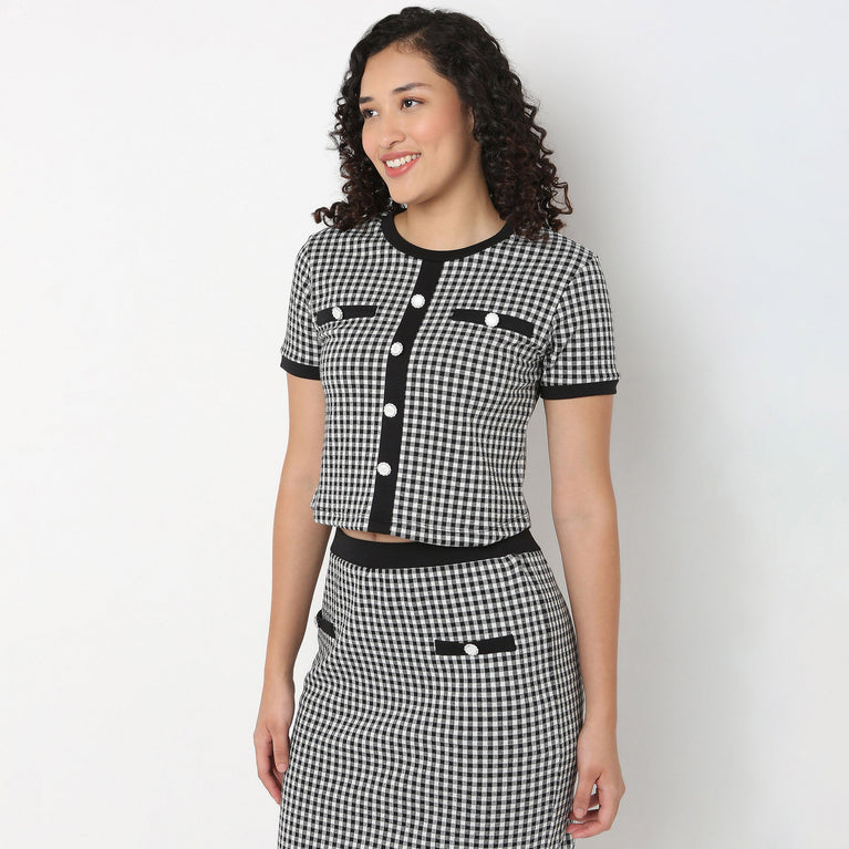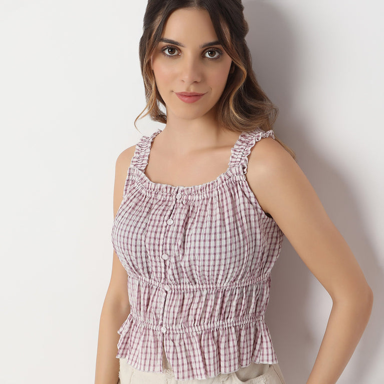 Whether you're heading to a brunch with friends or a casual evening event, the Checkered Betty Top is your go-to choice for a stylish and comfortable outfit.