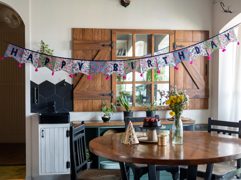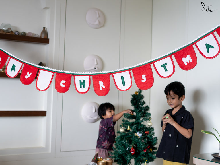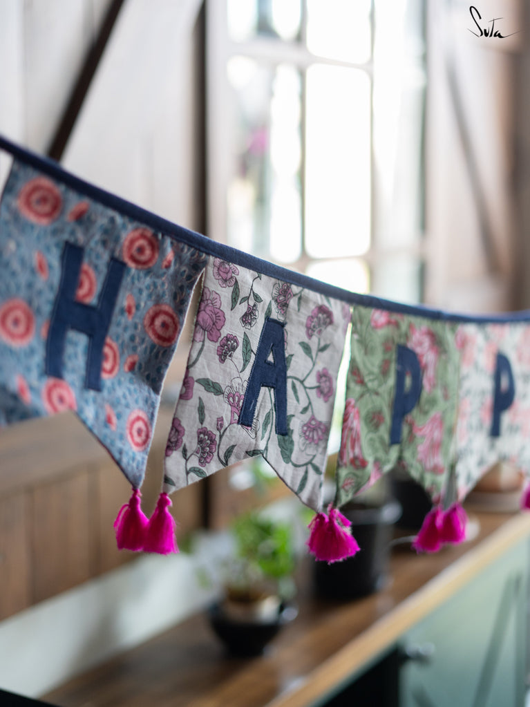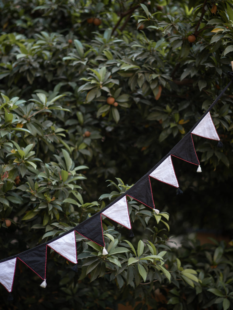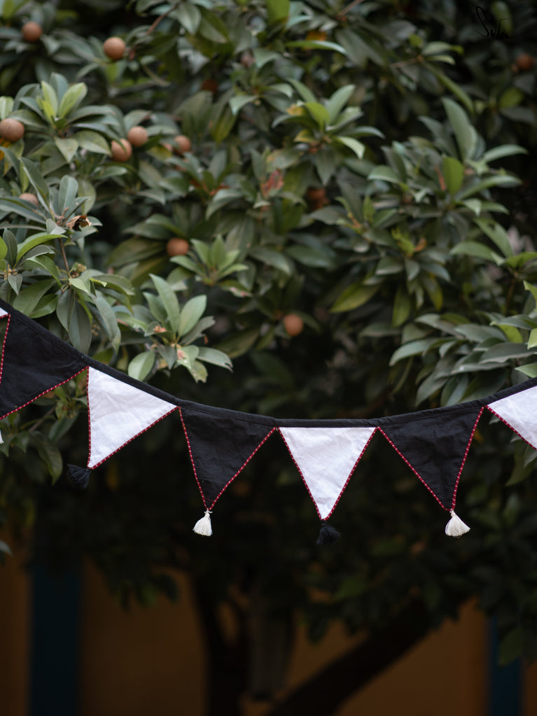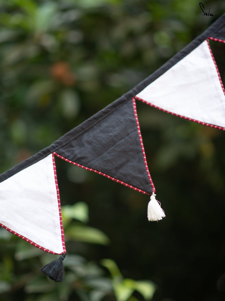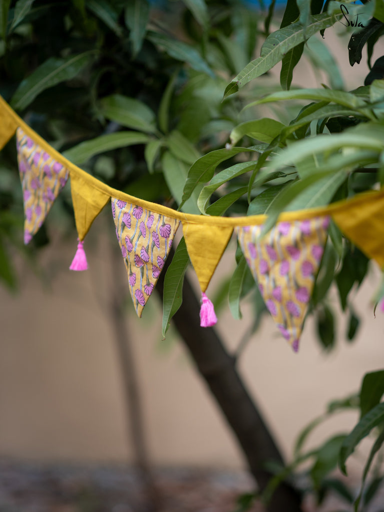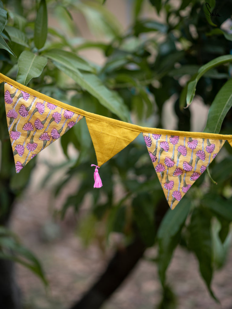 Cotton slub is a type of cotton fabric that has a rough, uneven texture. The cotton is twisted prior to weaving, resulting in a fabric that is light and floaty. The beauty of this fabric is that because of its inherent knots and uneven texture, products made from its are invariably one-of-a-kind. This collection of buntings utilises fabric scraps, enabling Suta to reduce our textile waste and contribute towards a greener planet.