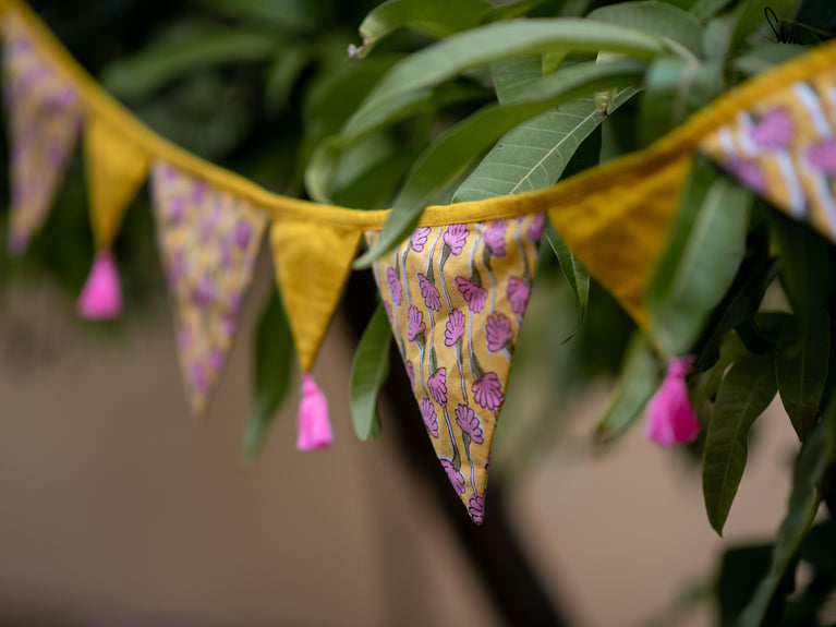 This is a versatile bunting that utilises leftover cotton slub fabric and transforms into a beautiful decor accent.