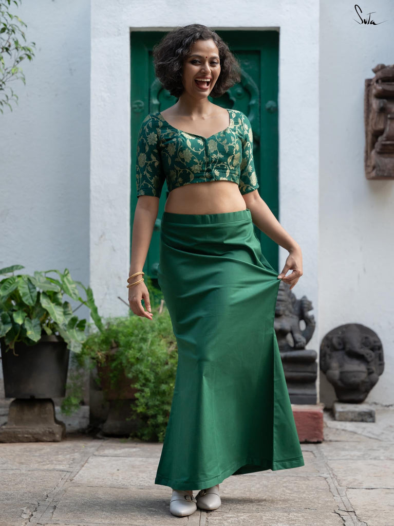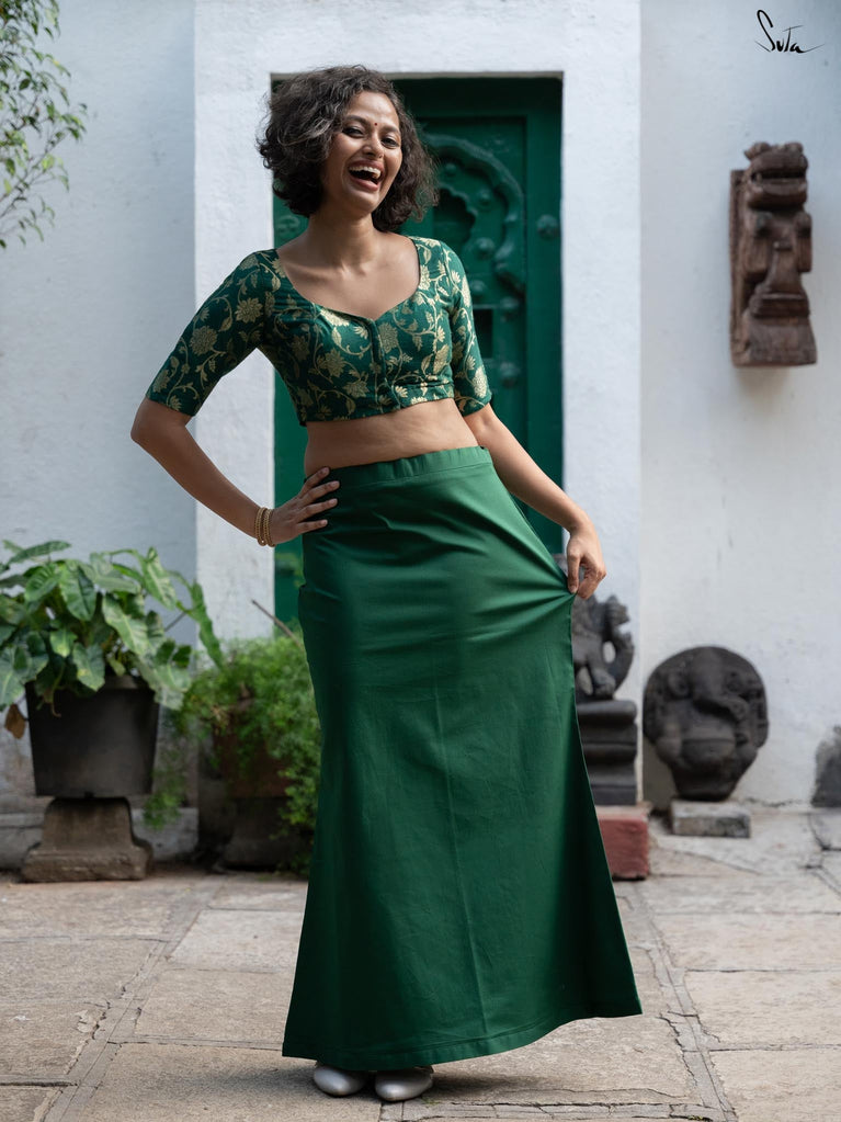 The Forest Play underskirts are made from soft, breathable cotton, providing a smooth and lightweight foundation for your sarees. Perfectly stretchable, they ensure your saree drapes gracefully while offering comfort for long celebrations.
