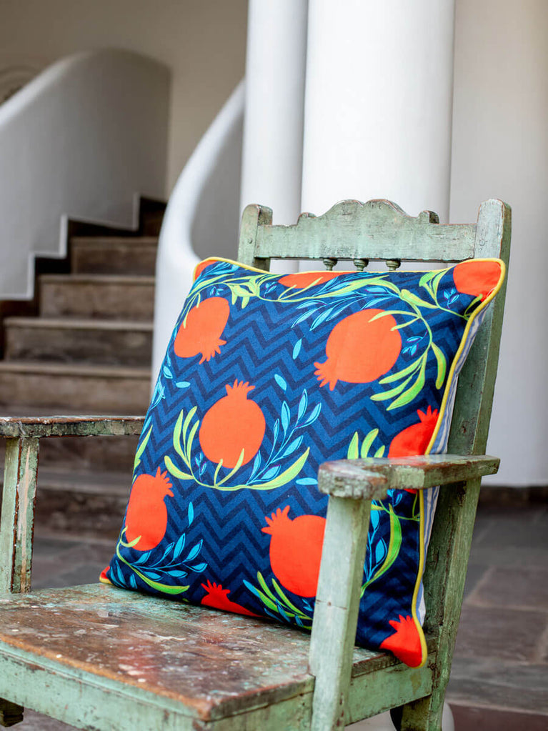 Fruits of Paradise Block Printed Cotton Cushion Cover - 24 Inch