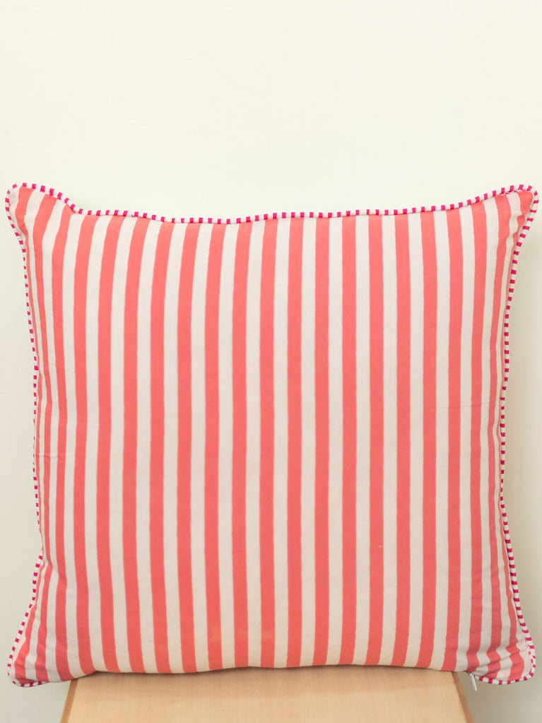 Flamingo Block Printed Cotton Cushion Cover - 24 Inch