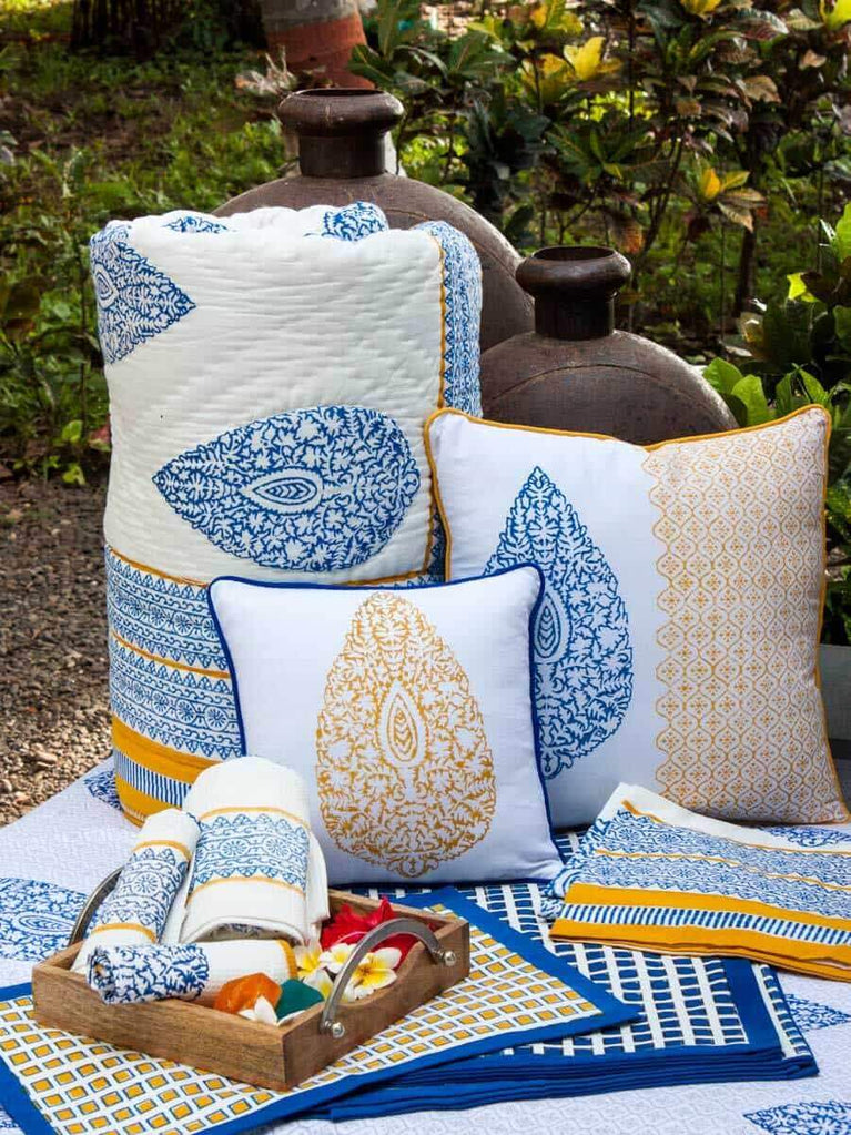 Arvind Block Printed Cotton Cushion Cover - 24 Inch