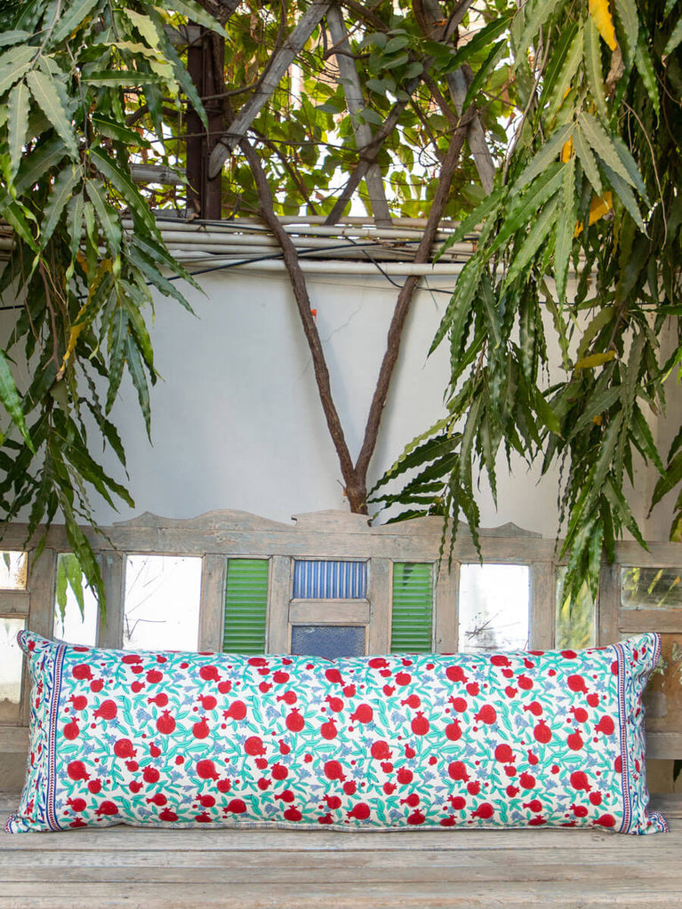 Fruits of Paradise Block Printed Cotton Cushion Cover - 16 X 48 Inch