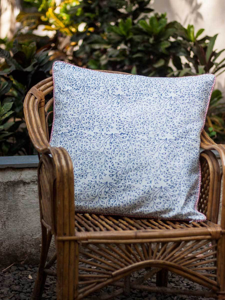 Indigo Block Printed Cotton Cushion Cover - 12 Inch