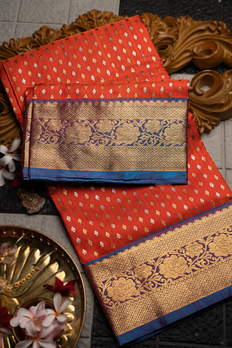 Varamahalakshmi Orange & Blue Venkatagiri Buttis Saree