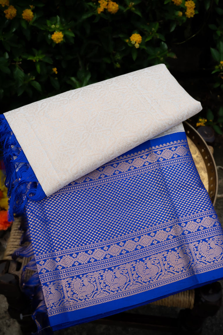Varamahalakshmi Off White & Royal Blue Kuppadam Jaal Saree
