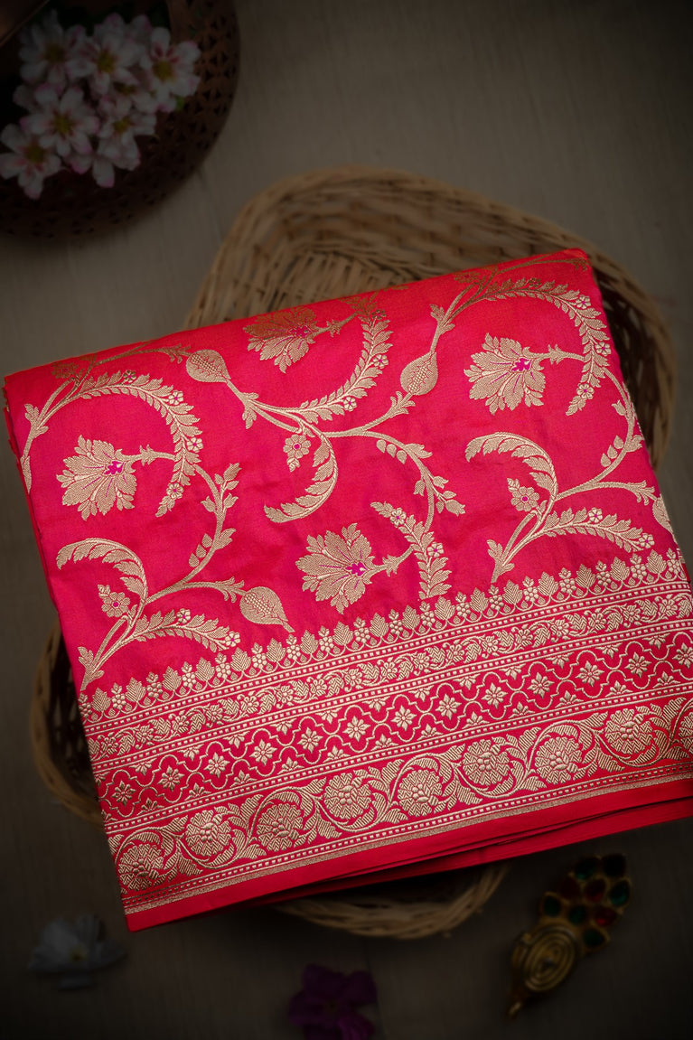 Varamahalakshmi Orange & Gold Banarasi Floral Jaal Saree