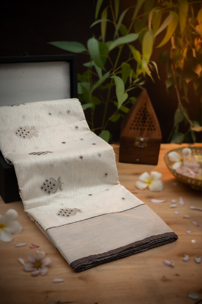 Varamahalakshmi Off White & Brown Chanderi Motifs Saree