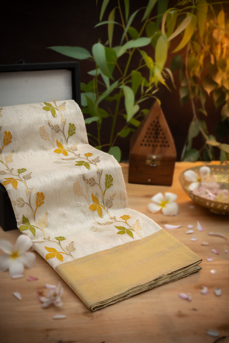 Varamahalakshmi Off White & Gold Chanderi Motifs Saree