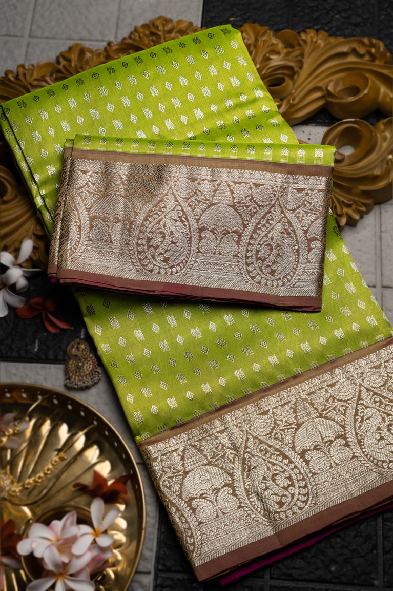 Varamahalakshmi Parrot Green & Magenta and Green Venkatagiri Buttis Saree