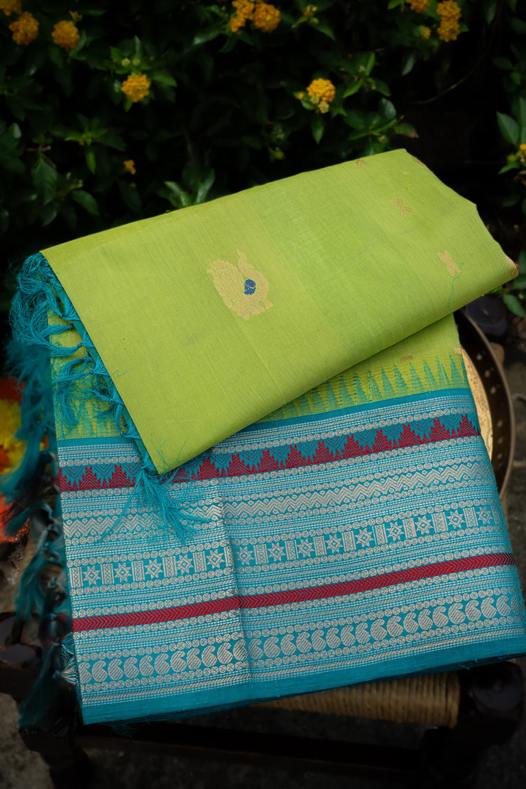 Varamahalakshmi Parrot Green & Teal Green Kuppadam Motifs Saree