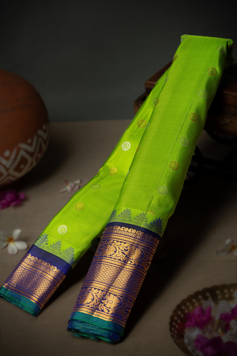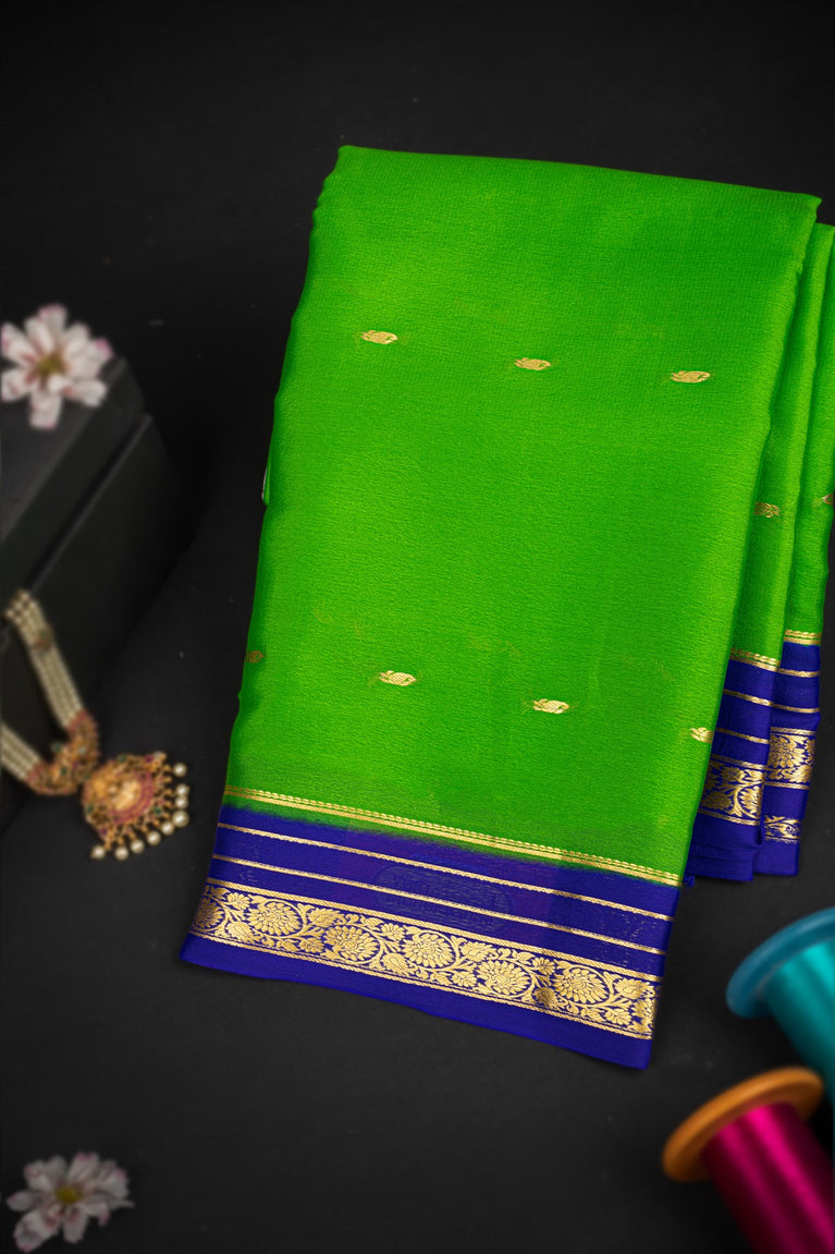 Varamahalakshmi Parrot Green & Royal Blue Mysore Buttis Saree
