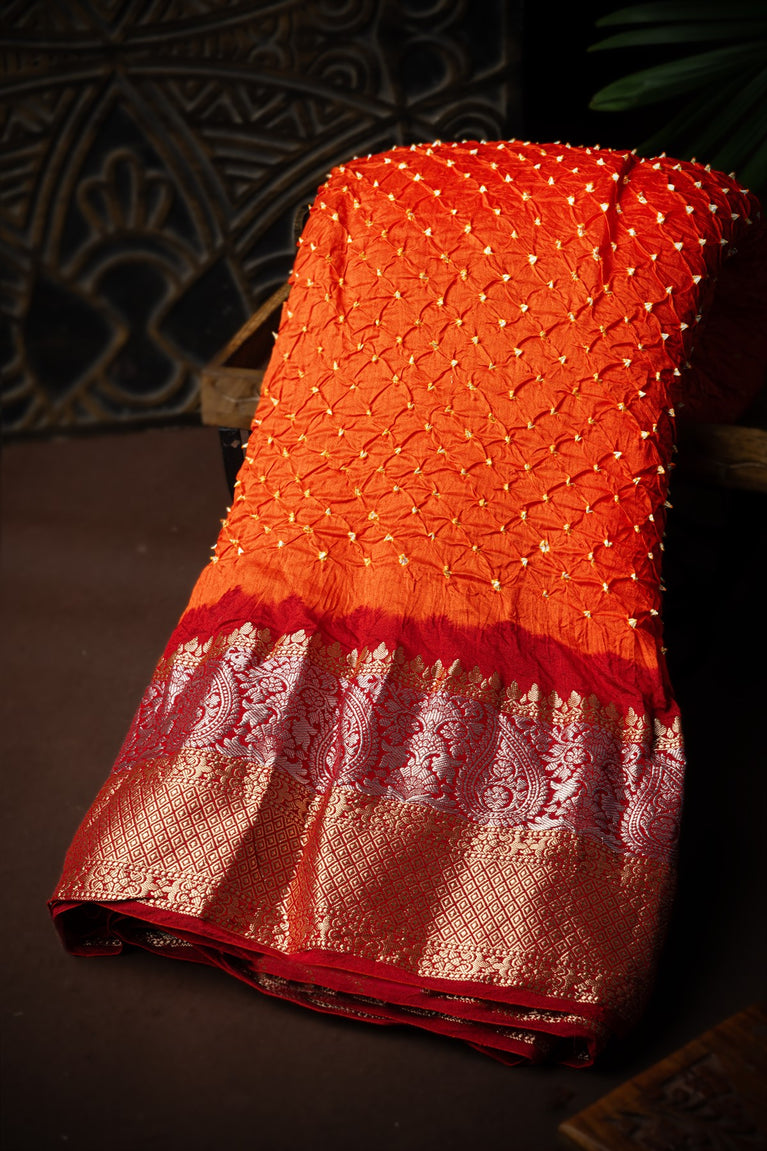 Varamahalakshmi Orange & Maroon Bandhani Bandhani Saree
