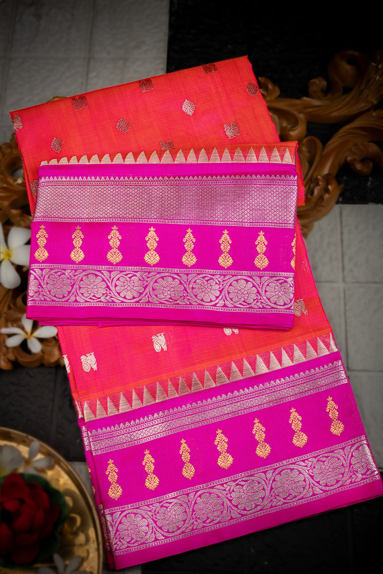 Varamahalakshmi Peach & Yellow Zari Kota Buttis Saree