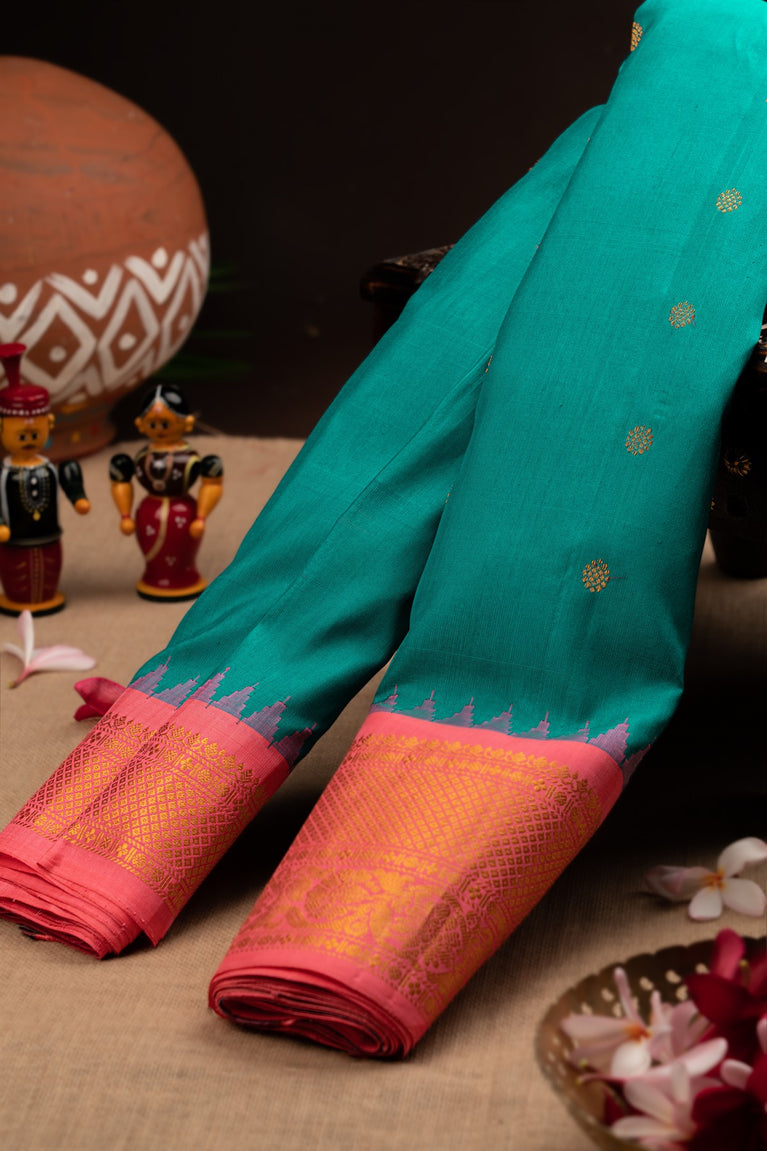 Varamahalakshmi Pink & Sea Green Gadwal Checks And Buttis Saree