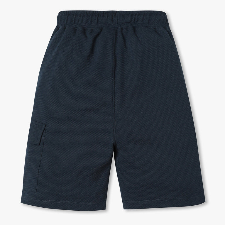These boys' knee-length shorts are crafted for comfort and style, making them the perfect addition to any young wardrobe. The blend of cotton and polyester ensures a soft touch against the skin while providing durability and easy maintenance.
